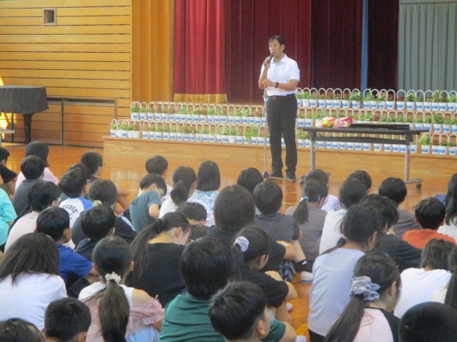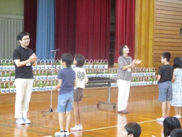 夏休みの間大切に世話をしたベゴニアの花が並べられた会場で、子供たちは人権の大切さを今一度確認しました。