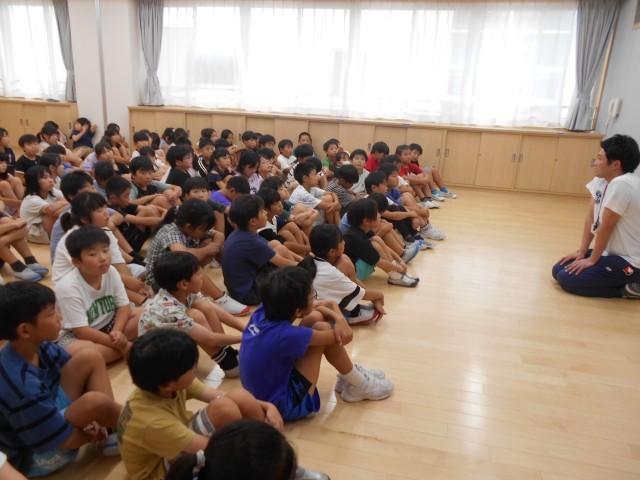 学年集会を開きました。2学期の「総合的な学習の時間」の内容について確認したり、学年目標「おひさま」達成に向けた新たな取り組みについて話を聞いたりしました。真剣に話を聞き、2学期の学習や生活を頑張ろうと意識を高めた子供たちでした。