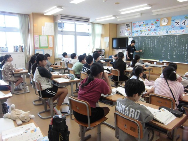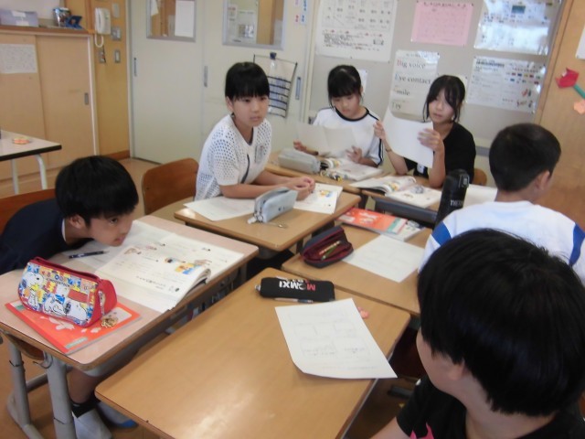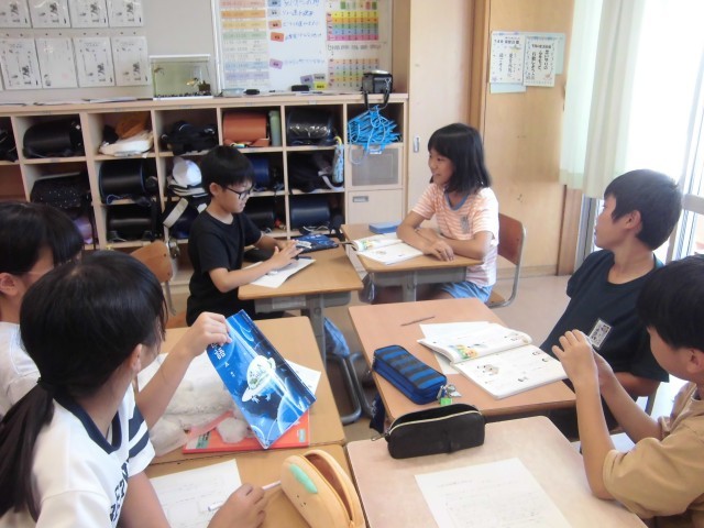 国語科の授業で対話の練習をしました。「海」と「山」の2つの立場から、説得力のある説明を考えていました。どの立場にあっても、よい考えを伝えれるといいなと思います。