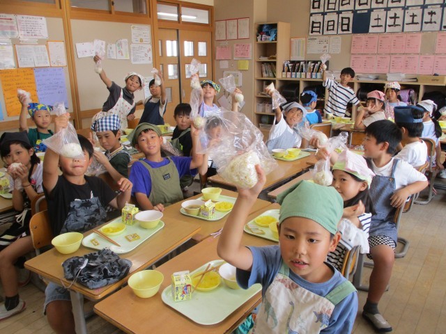自分で作るおにぎりを美味しそうに頬張る子供たちでした。