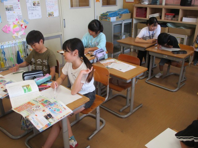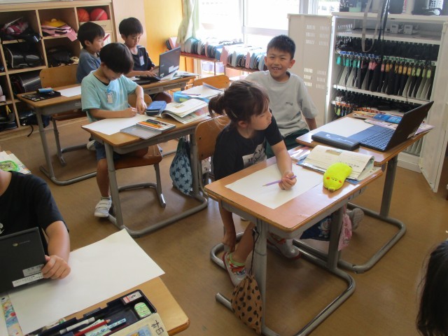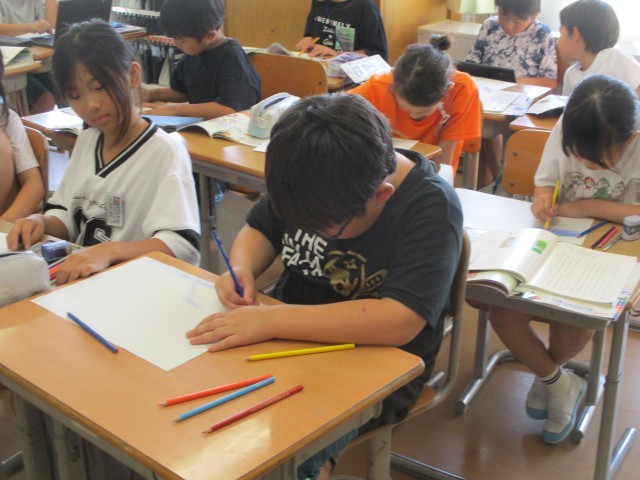 今日は国語科の物語の一文から連想した景色を描く練習に取り組みました。