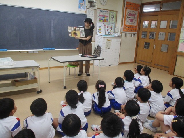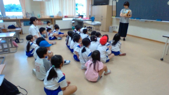 今日は、2学期初めてのお話の会がありました。子供たちは、楽しくお話を聞いていました。