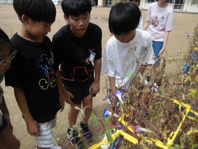 理科の学習で、植物のつくりについて学習しています。これまでの経験から植物のつくりについて予想し、動物のように命をつないでいくことに面白さを感じていました。