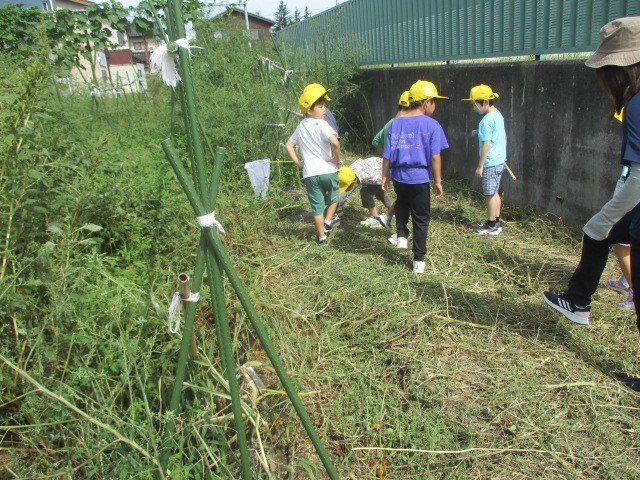 今日は、虫探しをしました。子供たちは、畑やグラウンドの隅々まで探し、どんな虫がいるのかを探していました。
