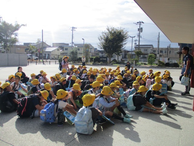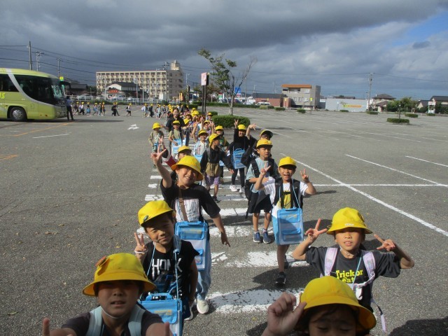 出発式でにこにこたんけんたいとしての約束を確認し、いざファミリーパークへ出発!!