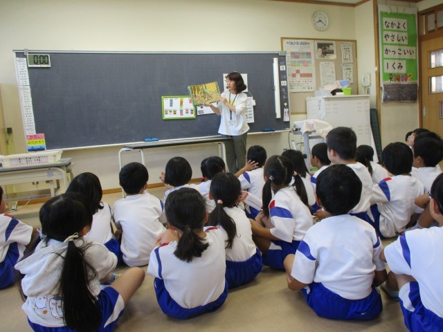 朝の時間にお話の会がありました。みんな楽しそうに絵本を見ていました。