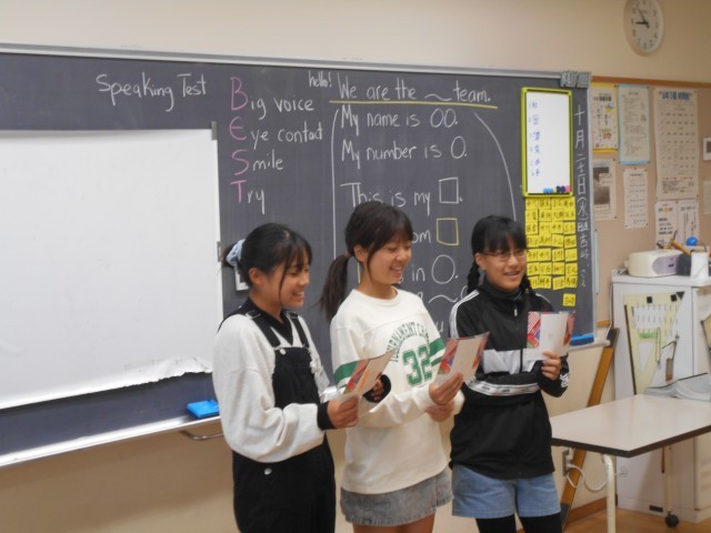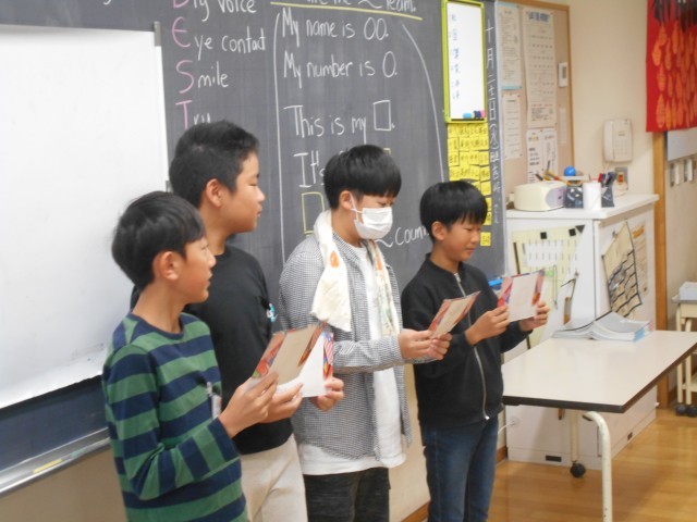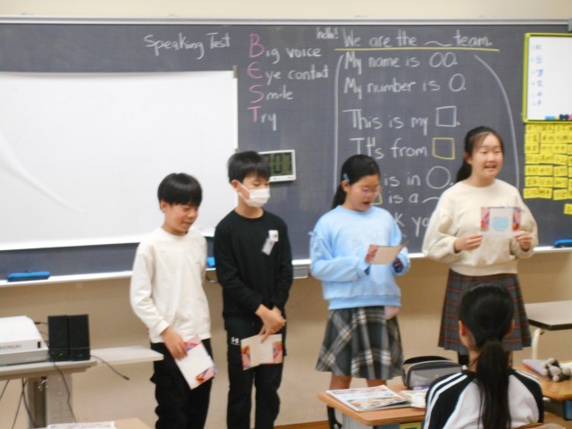 衣服や文房具など外国産の物について、「It's from~」などの表現を使って外国とのつながりを発表しました。