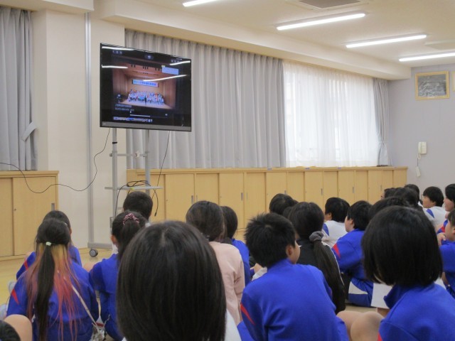 ケーブルテレビで放送された音楽会の発表を、みんなで鑑賞しました。