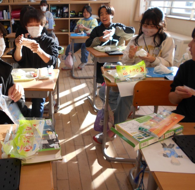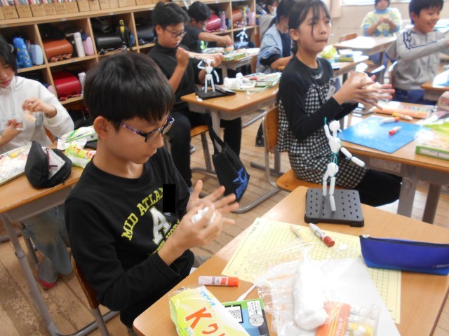 粘土をよく捏ねて伸ばしながら、形を整えました。触った感触を楽しんで、製作しました。