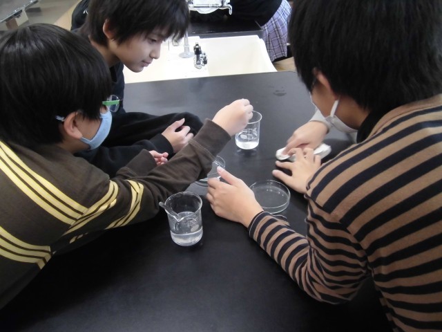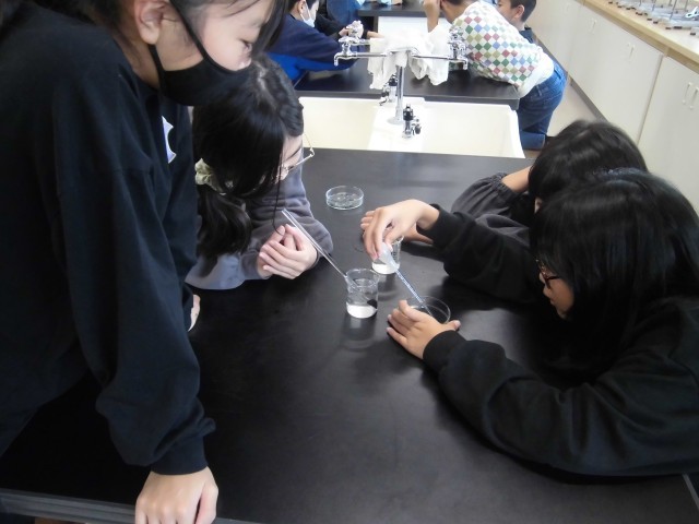 5年生 理科 「水溶液」 公開日 2025/12/01 更新日 2025/12/01 5年生 5年生は水溶液について学習しました。実験を通して水にものがとけるということを実感していました。一生懸命食塩を溶かしている姿が印象的でした。
