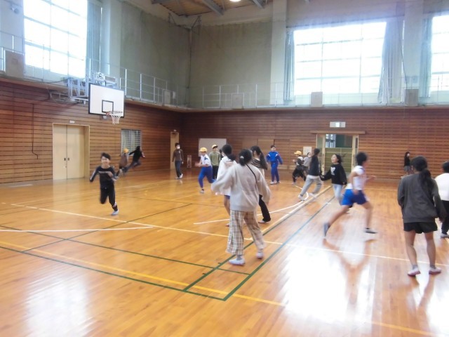 紙飛行機大会や鬼ごっこで遊び、5年生の子供たちは非常に楽しんでいました。