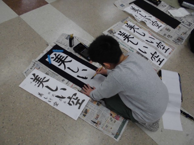 「美しい空」の字のバランスに気を付けて練習しました。