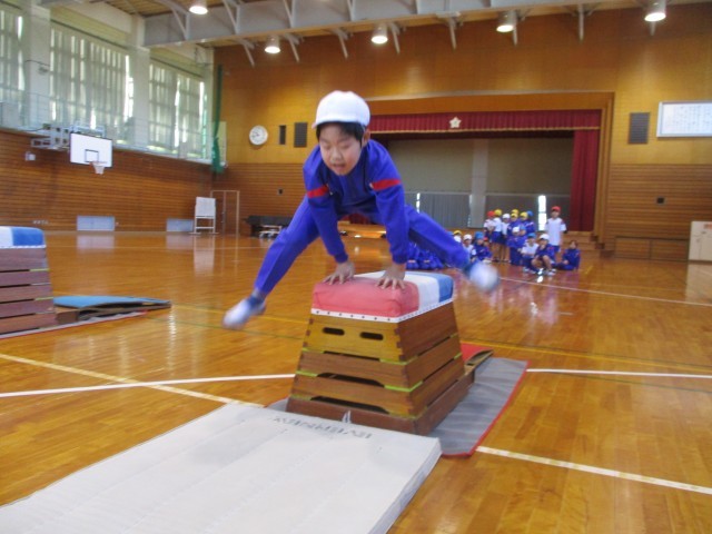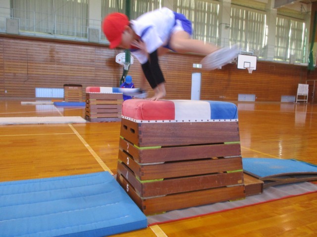 踏みきりや着手、着地などのポイントを意識しながら、一生懸命取り組んでいます。