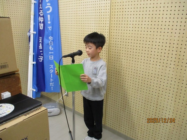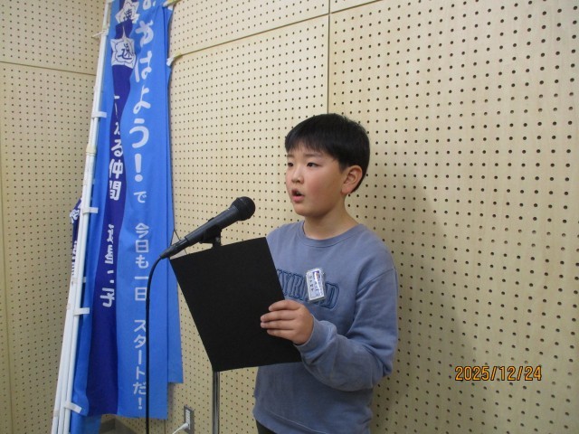2学期終業式はオンラインで行いました。代表児童が、2学期頑張ったことや3学期頑張りたいことを述べました。
