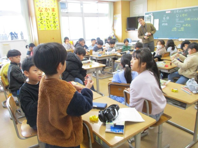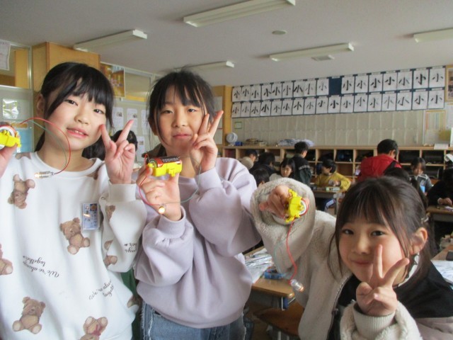 豆電球に明かりがつくときはどのような条件があるのか調べたり、気付いたことを友達に伝えたりすることができました。