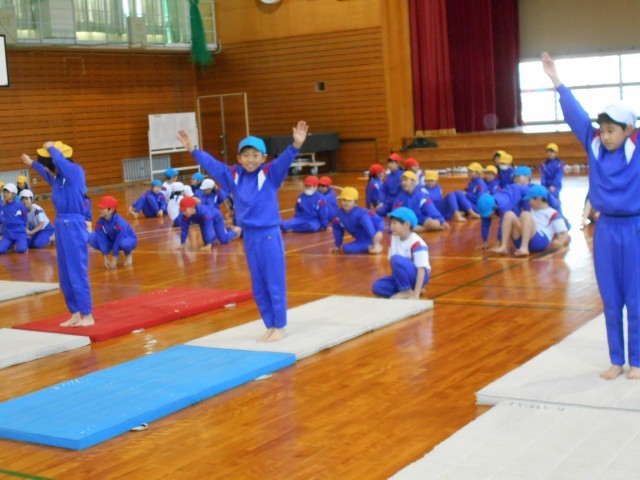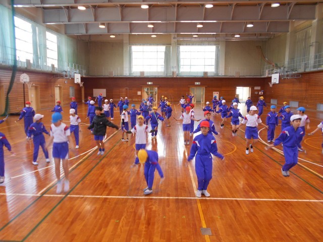 縄跳びやマット運動に取り組んでいます。寒い中でも元気いっぱいに体を動かしています。