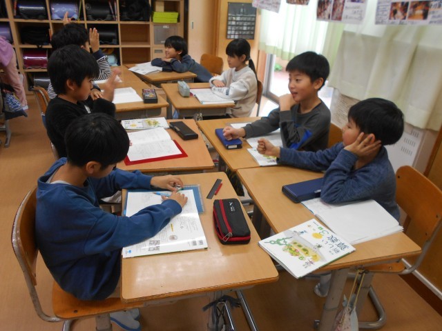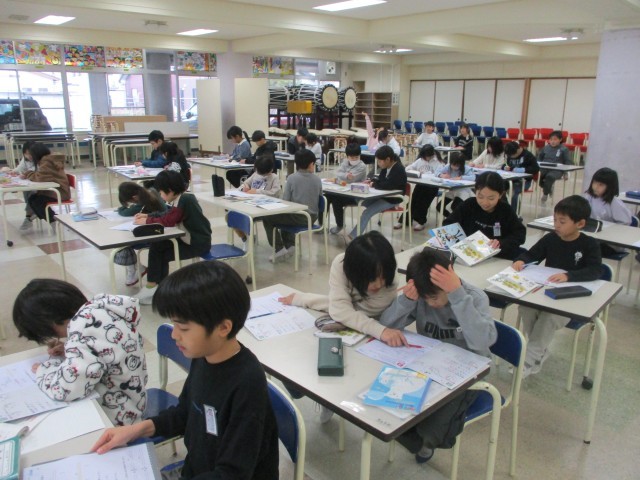 3学期の算数科の学習では、進度別に分かれて学習をしています。