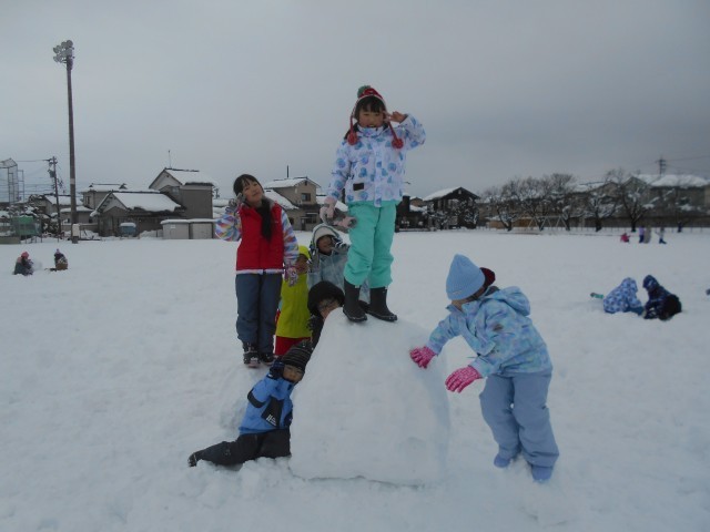 たくさんの雪に大喜びな子供たちです。雪だるまを作ったり、思い切り雪に飛び込んだりしてとても楽しそうでした。