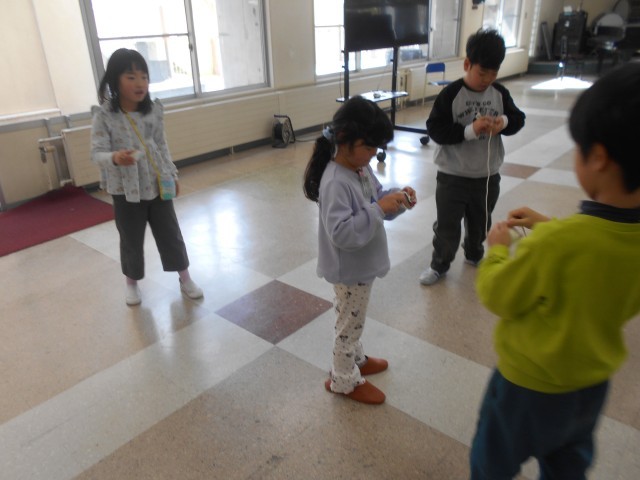 こまの色塗りをし、自分だけのこまを作りました。その後、実際にこまを回し楽しみました。
