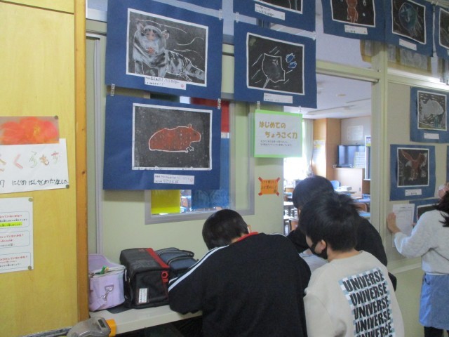 図画工作科の時間に作成した版画の作品の鑑賞を行いました。