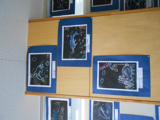 先日の学習参観日で掲示できなかった3年2組の版画です。横向きの写真で見づらい点がありますがご了承ください。