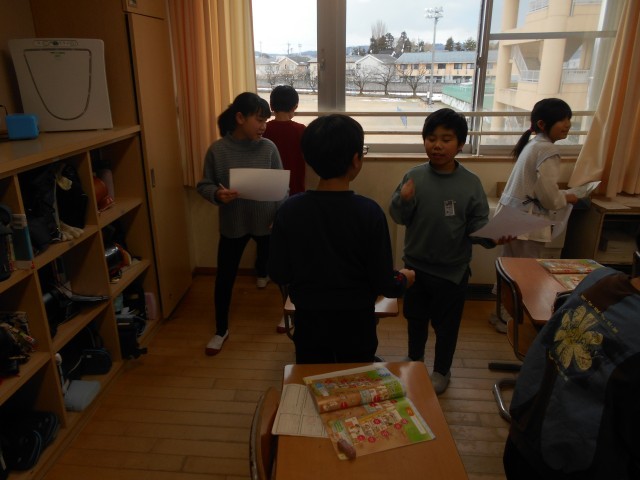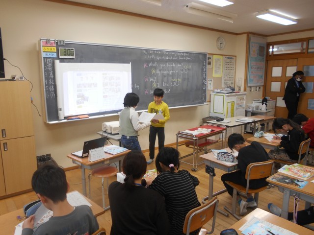 校内のお気に入りの場所と理由を英語で伝え合いました。