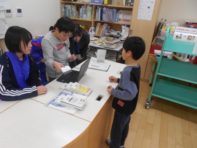 本の貸し出しをしたり、返却された本を元の場所に戻したりなど、図書委員の仕事を体験しました。