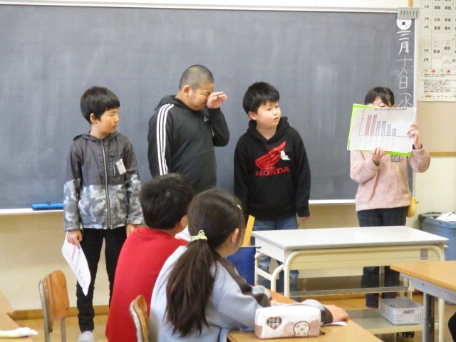 生活の中で、ちょっと聞いてみたいことをアンケートにして、分かったことを発表しました。