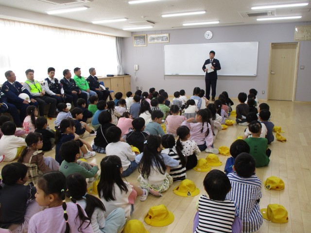 1年生では、警察署の方や地域の方をお招きして、交通安全教室を行いました。