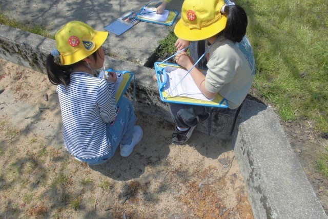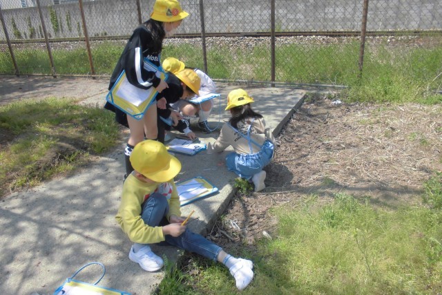 春の生き物を探しました。色や形、大きさに注目して観察しました。