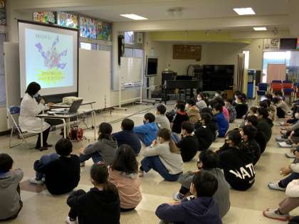 地域の薬剤師さんをお招きして、薬物乱用防止教室を行いました。薬剤師さんからは、薬物に関する情報や、当事者にならないために必要な心構え等を分かりやすく教えていただきました。ある子供は、振り返りで「私は絶対に薬物乱用をしません。」と力強く語ってくれました。きっぱりとNOを言えるよう、普段から気を付けていきたいものですね。