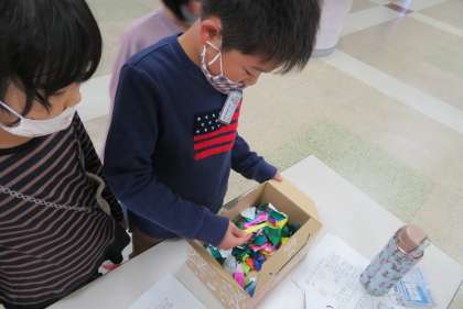 「金魚すくい」ならぬ「飾りすくい」、手作りのわりばし鉄砲の射的等の屋台を準備しました。子供たちは、「ハートの飾りをすくえた!」「的にうまく当たった!」と歓声を上げながら楽しんでいました。