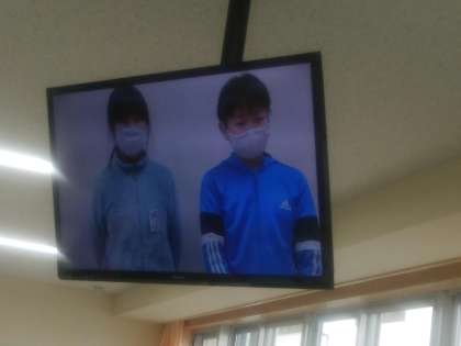 全校集まっての集会ができない中、テレビ放送を使っての集会を行いました。運営委員会からの挨拶運動に関するお知らせ、図書委員会からの図書室利用に関するお知らせ、「船長さんの命令」ゲームなど、お笑いや劇を盛り込んだ楽しい集会となりました。