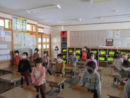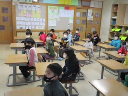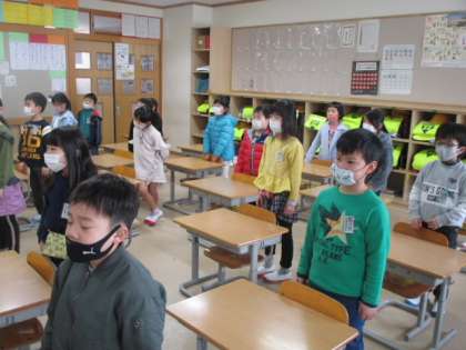 1月8日(金)、大雪の中、1年生の子供たちはがんばって登校し、元気な顔を見せてくれました。始業式では、真剣な表情で校長先生のお話を聞いたり、校歌を歌ったりしていました。2年生に向かって、3学期もみんなで力を合わせてがんばっていきたいと思います。