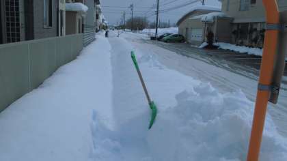 教員総出で校区に分かれ、通学路(歩道)の除雪作業を行いました。小さな子供では歩くことのできないほど高低差のある交差点横断歩道、深い雪に覆われた歩道等、できるだけの作業に取り組みました。子供たちの安全確保にはまだまだ十分とは言えない状況です。