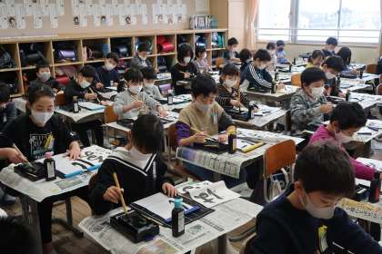 ついに書き初め大会!!! 公開日 2021/01/18 更新日 2021/01/18 3年生 本日、書き初め大会をしました。冬休みに一生懸命練習した成果を発揮しようと、一人一人が集中して書いていました。
