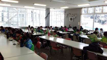 4年スキー学習 昼食の時間 公開日 2021/01/25 更新日 2021/01/25 最近の出来事 昼食は、カレーです。密にならないような配置で、間隔をあけ、黙々と食べています。スキーの後のカレーは、とてもおいしいです。