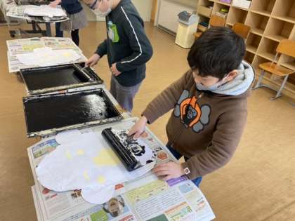 顔ができたよ 公開日 2021/02/05 更新日 2021/02/05 2年生 できあがった顔を黒インクで刷りました。 完成した作品を見た子供たちは、「こんなふうに写るんだ」「〇〇さんの顔、ウインクしていて面白いね」と話していました。 学習公開日に是非ご覧ください。