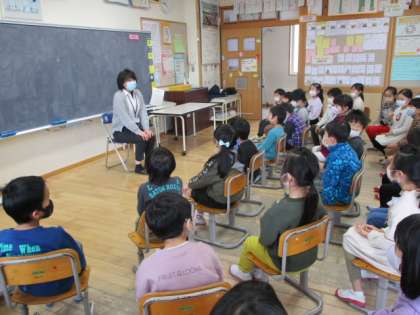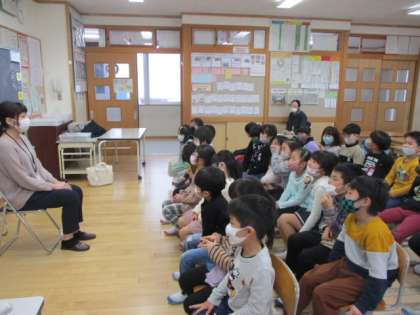 いろいろなおはなしをきいたよ! 公開日 2021/02/18 更新日 2021/02/18 1年生 1年生は、婦中図書館から2名の方をお招きして、読み聞かせや、いろいろな本の紹介をしていただきました。子供たちはどの本にも興味津々で、お話の世界に浸っていました。