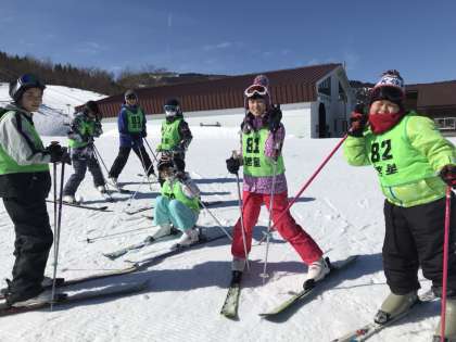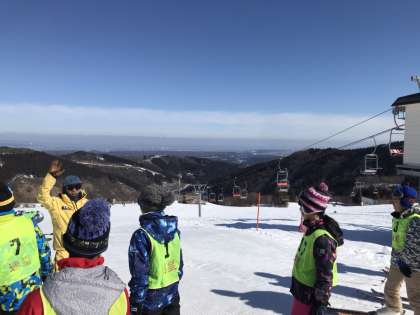 頂上から滑る班は、富山湾まで見える景色を楽しみながらこれから滑ります。