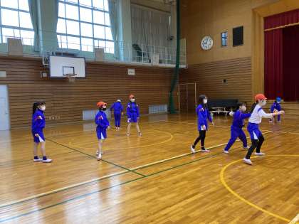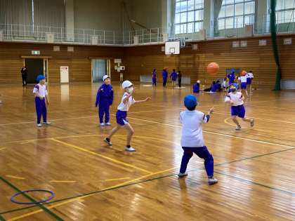 ハーフバスケットボールも回数を重ね、上達した姿が見られます。ボールを持っていない人も積極的に動いてパスが回るようになってきました。ボールがつながる楽しさや得点する楽しさを感じながら、意欲的に活動しています。