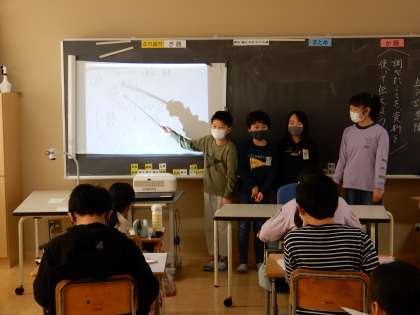 国語科の学習では、グループで生活調査を行い、アンケートをとってまとめたことや考えたことを伝えました。アンケート結果をグラフに表して発表したり、「初め、中、終わり」の段落を意識して考えを伝えたりするなど、これまでの学習を生かして発表することができました。