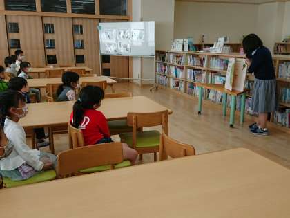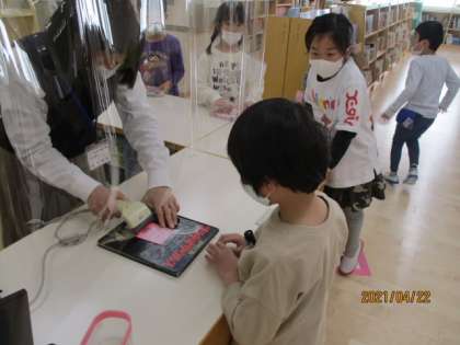 はじめてほんをかりたよ! 公開日 2021/04/23 更新日 2021/04/23 1年生 今週、1年生は図書館オリエンテーションをしました。図書館司書の先生から本の借り方や返し方を教えていただいたり、読み聞かせをしていただいたりしました。最後に1人1冊本を借りました。これから本を借りに図書室に行くのが楽しみです。