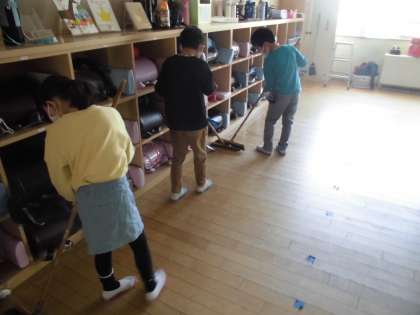 教室や廊下のすみまで気にかけて掃除をしている3年生が何人もいました。