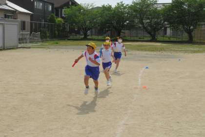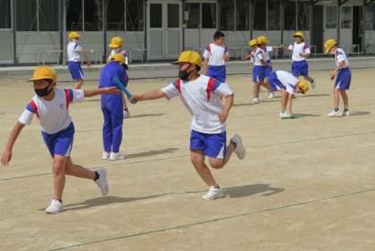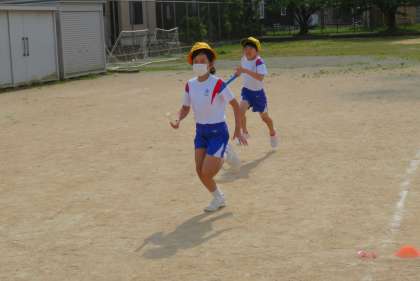 どの団も、バトンパスの練習を生かしながら、競技を楽しんでいました。