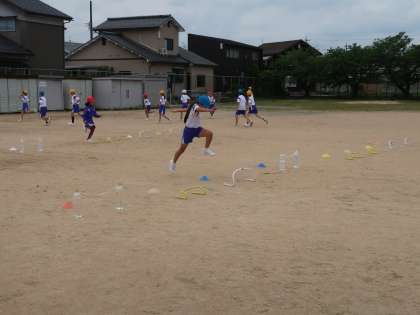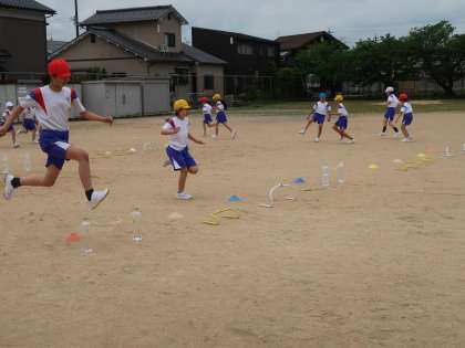 ミニハードル走にチャレンジ! 公開日 2021/05/26 更新日 2021/05/26 4年生 体育学習公開に向けて、ミニハードル走に取り組んでいます。インターバルの距離を変えて、リズムよく跳べるコースを自分で選び、練習しています。