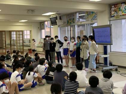 学年集会! 公開日 2021/05/31 更新日 2021/05/31 6年生 学年全員で集まり、歌を歌ったり仲間の頑張りを紹介したりしました。 来週の学習公開に向けて、リレーのアンカーが意気込みを話すと、自然に拍手が起こっていました!!