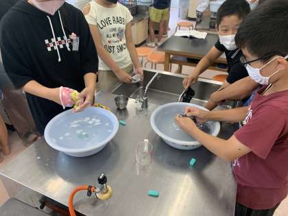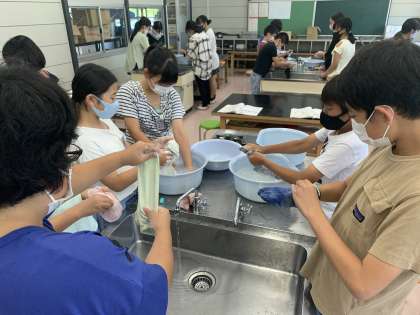家庭科の学習で、手洗いでの洗濯に挑戦しました。