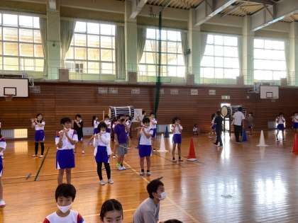 6年生の曲「立山つるぎ」の全体練習が始まりました。