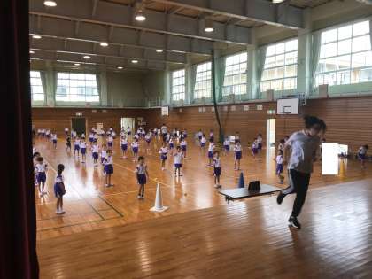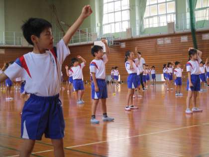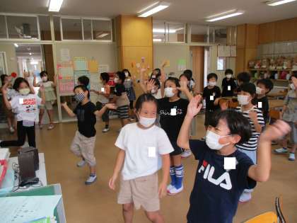 体育科の学習では、ダンスをしています。振り付けをしてくださった講師の先生をお招きして教えていただいたり、休み時間に教室で振りを確認したりしながら、一生懸命練習に取り組んでいます。